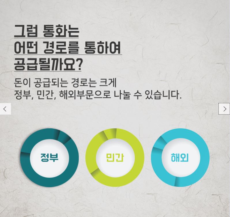 돈이 공급되는 경로는 크게 정부, 민간, 해외부문으로 나눌 수 있습니다.