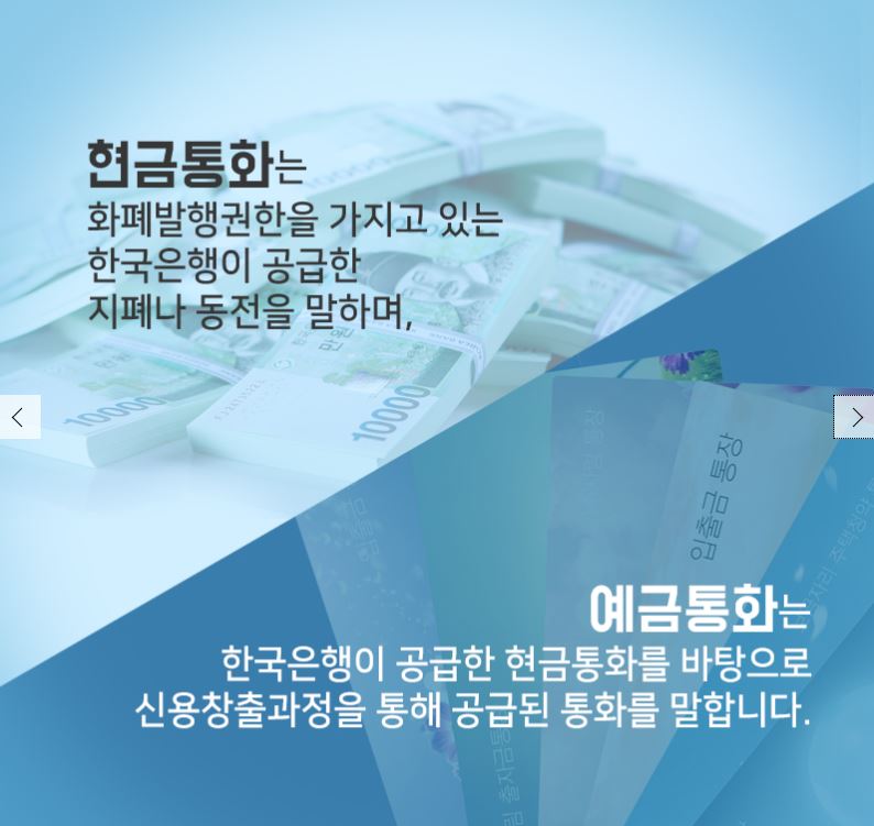 예금통화는 한국은행이 발행한 현금통화를 바탕으로 신용창출과정을 통해 공급된 통화를 말합니다.
