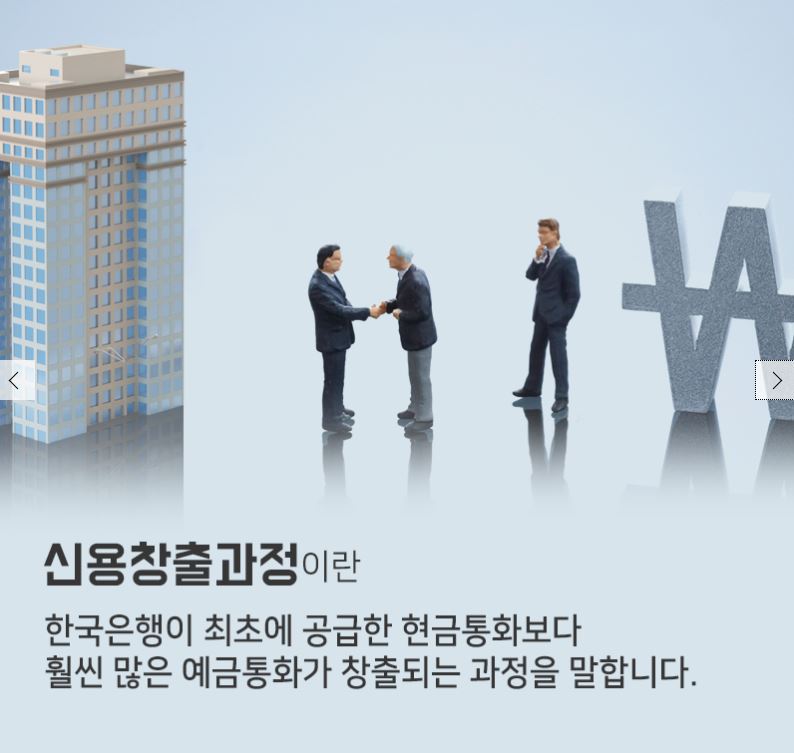 한국은행이 최초에 공급한 현금통화보다 훨씬 많은 예금통화가 창출되는 과정을 말합니다.