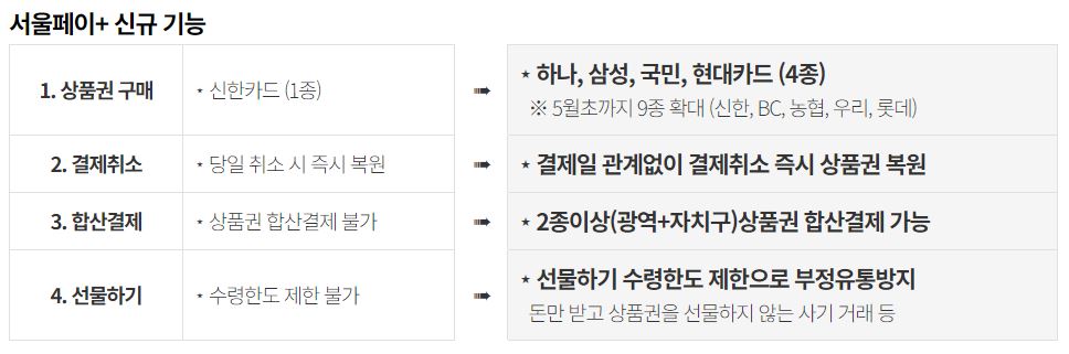 주목할 만한 추가 사항 중 하나는 '상품권'과 '자치구별 서울사랑 상품권'을 결합해 결제할 수 있는 기능입니다.