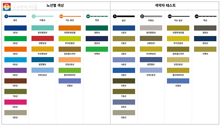 | 색약자 고려 | 노선 구분이 어려움 | 명도와 채도 등을 조정하여 구분 용이 |