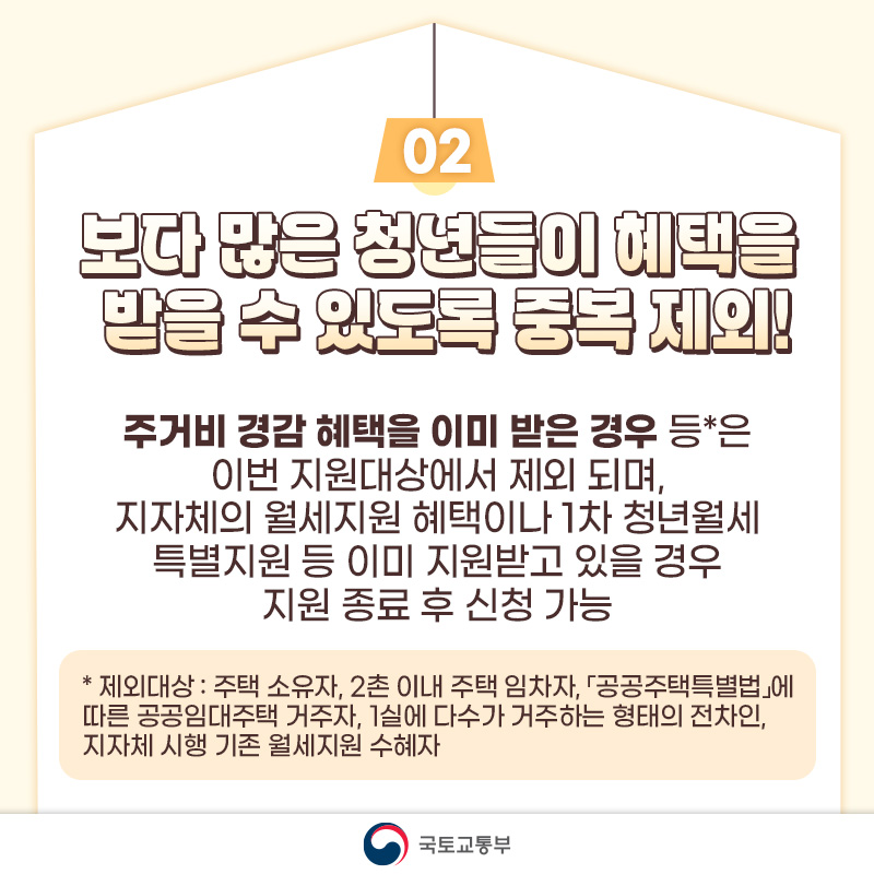 19세~34세 독립거주 무주택 청년 중 청년가구 소득이 기준 중위소득 60% 이하이면서, 원가구 소득이 중위소득 100% 이하인 청년
