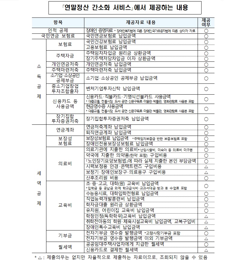 이 간소화 서비스는 올해 처음으로 제공되는 고향사랑 기부, 영화 티켓, 고용보험료, 대학 입시 시험료 등을 포함해서 총 41가지 종류의 자료를 제공합니다.