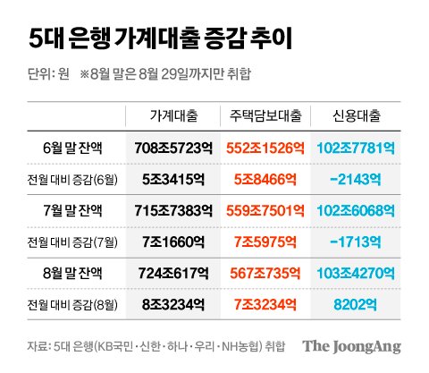 '영끌'과 '규제 막차' 수요 몰렸다…8월 주담대 7조 넘게 증가 | 중앙일보