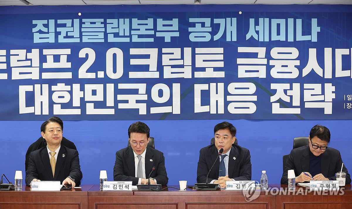 (서울=연합뉴스) 김영신 기자 = 더불어민주당이 6일 미국 도널드 트럼프 2기 정부의 가상자산 정책에 대한 대응책 마련에 나섰다.