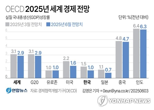 OECD, 올해 한국 성장률 전망 1.5→1.0% 또 하향